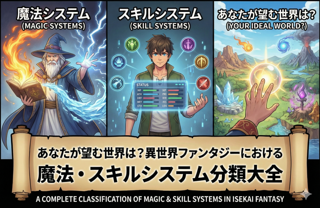魔法体系やスキルシステムには多種多様な種類があり、作者の発想次第でさまざまな世界が構築されてきました。本記事では、異世界作品に登場する代表的な魔法・スキルの分類を体系的に整理し、それぞれの特徴や魅力を解説します。