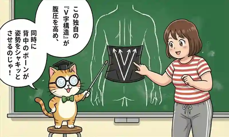 これにより、お腹だけでなく背中もしっかり支えられ、自然と背筋が伸びた美しい姿勢をキープしやすくなります。