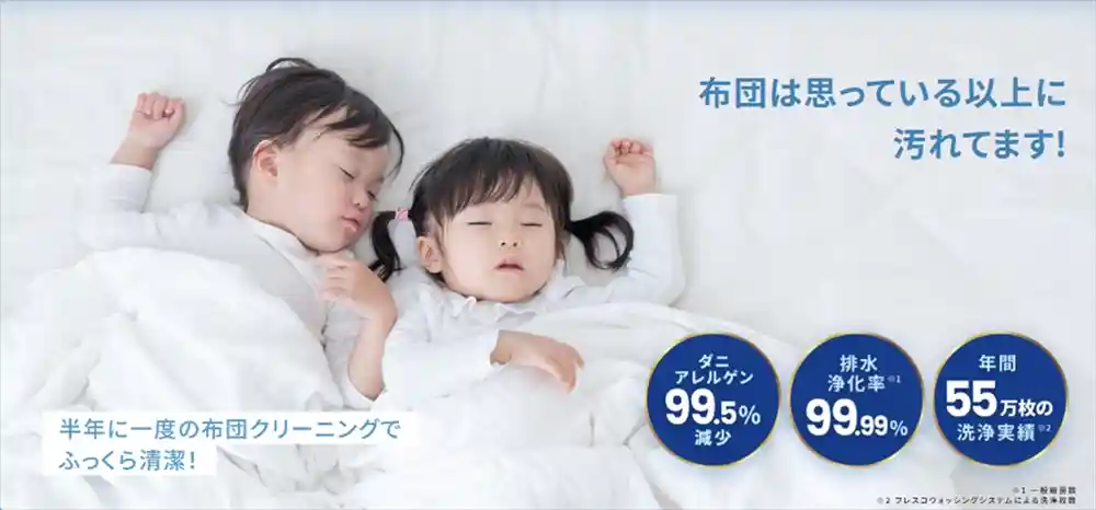 人は寝ている間にコップ1杯分の汗をかくため、天日干しやカバーの洗濯だけでは、中綿に染み込んだ汚れまで落としきるのは難しいものです。そこで今、本物志向の方から選ばれているのが、ふとん丸洗い専門の宅配クリーニング『フレスコ』です。リピーターが絶えないその圧倒的な「洗いの技術」と、選ばれる理由を詳しくお伝えします。