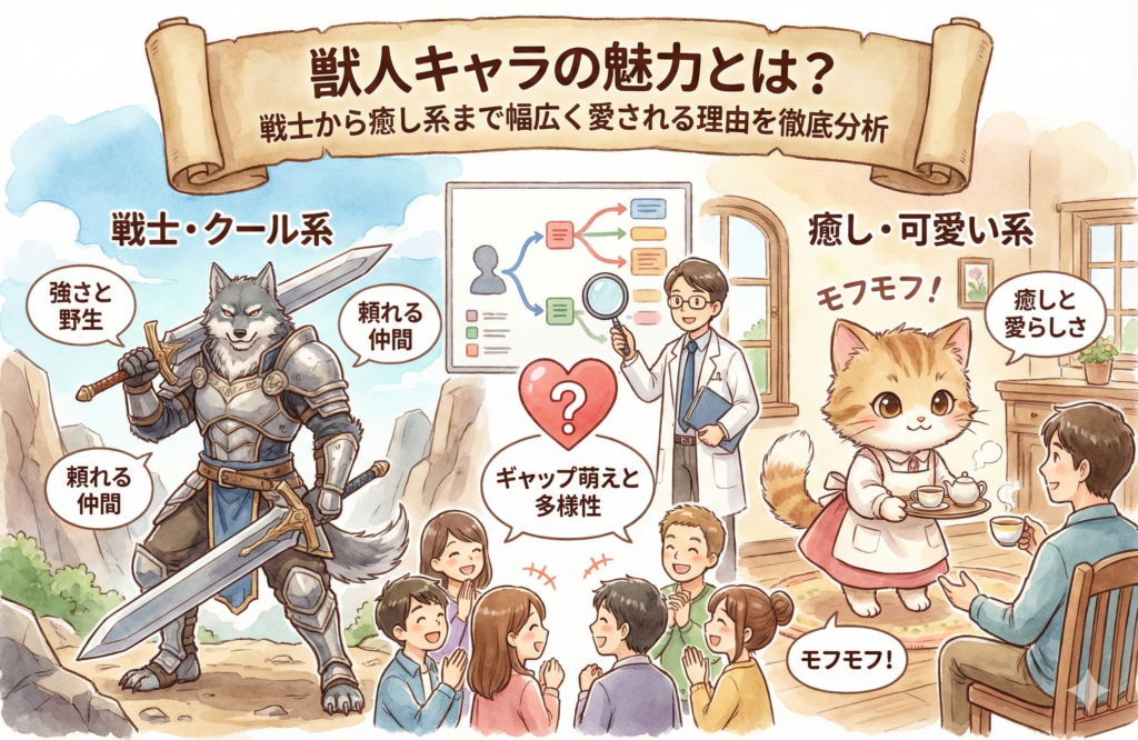 獣人キャラは、強さ、かわいさ、異文化性といった多くの魅力を併せ持つ存在です。その多様性ゆえに、どの作品でも独自の個性が生まれ、読者にとって忘れられないキャラクターとなります。
